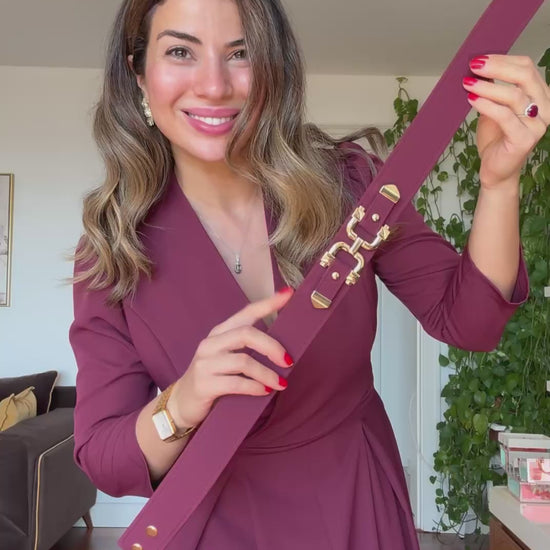 KRUVAZE YAKA KEMERLİ MİDİ ELBİSE - BORDO