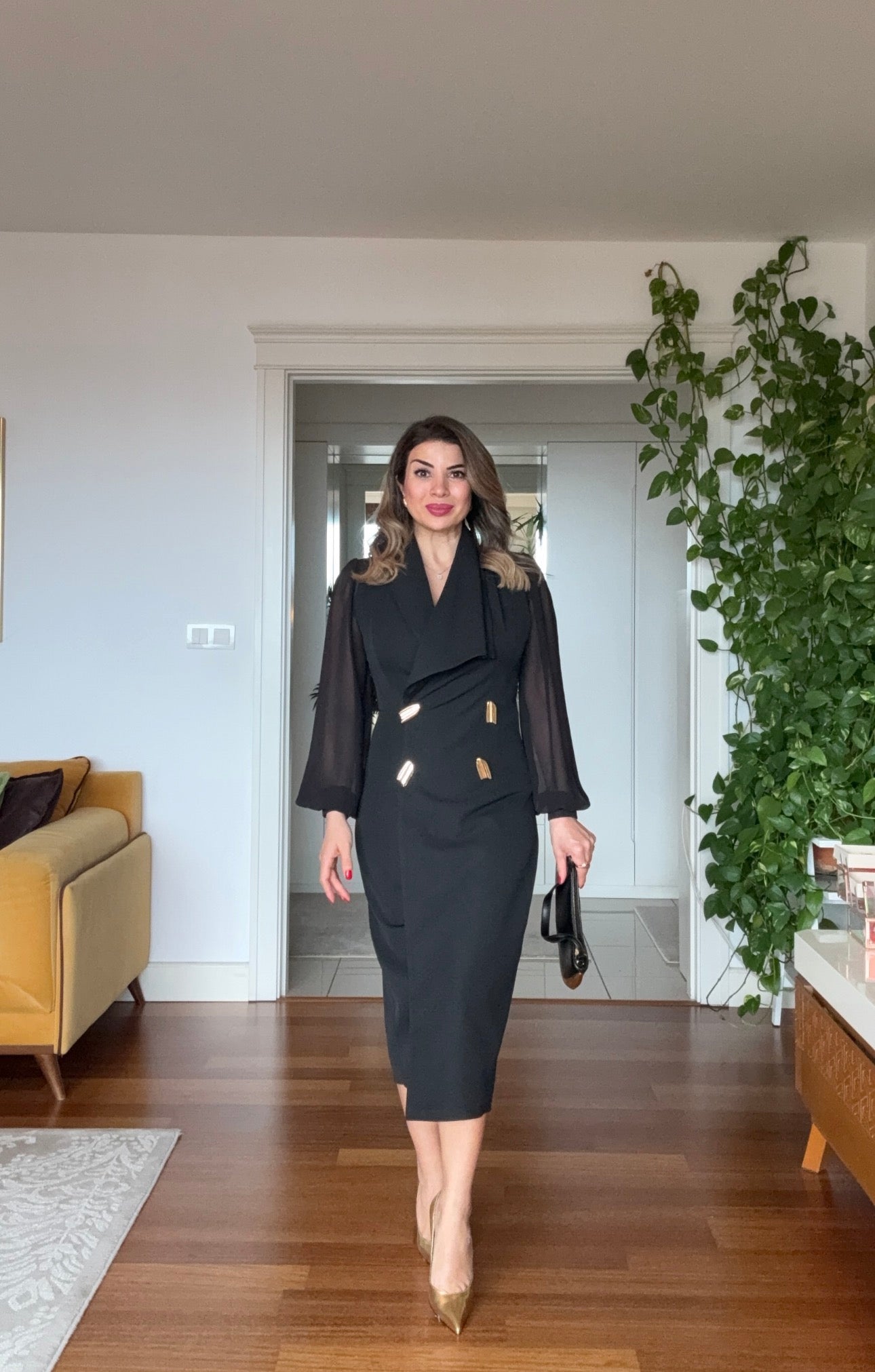 Şık bir clutch ve gold aksesuarlarla kombinleyerek davet stilinizi tamamlayabilirsiniz.