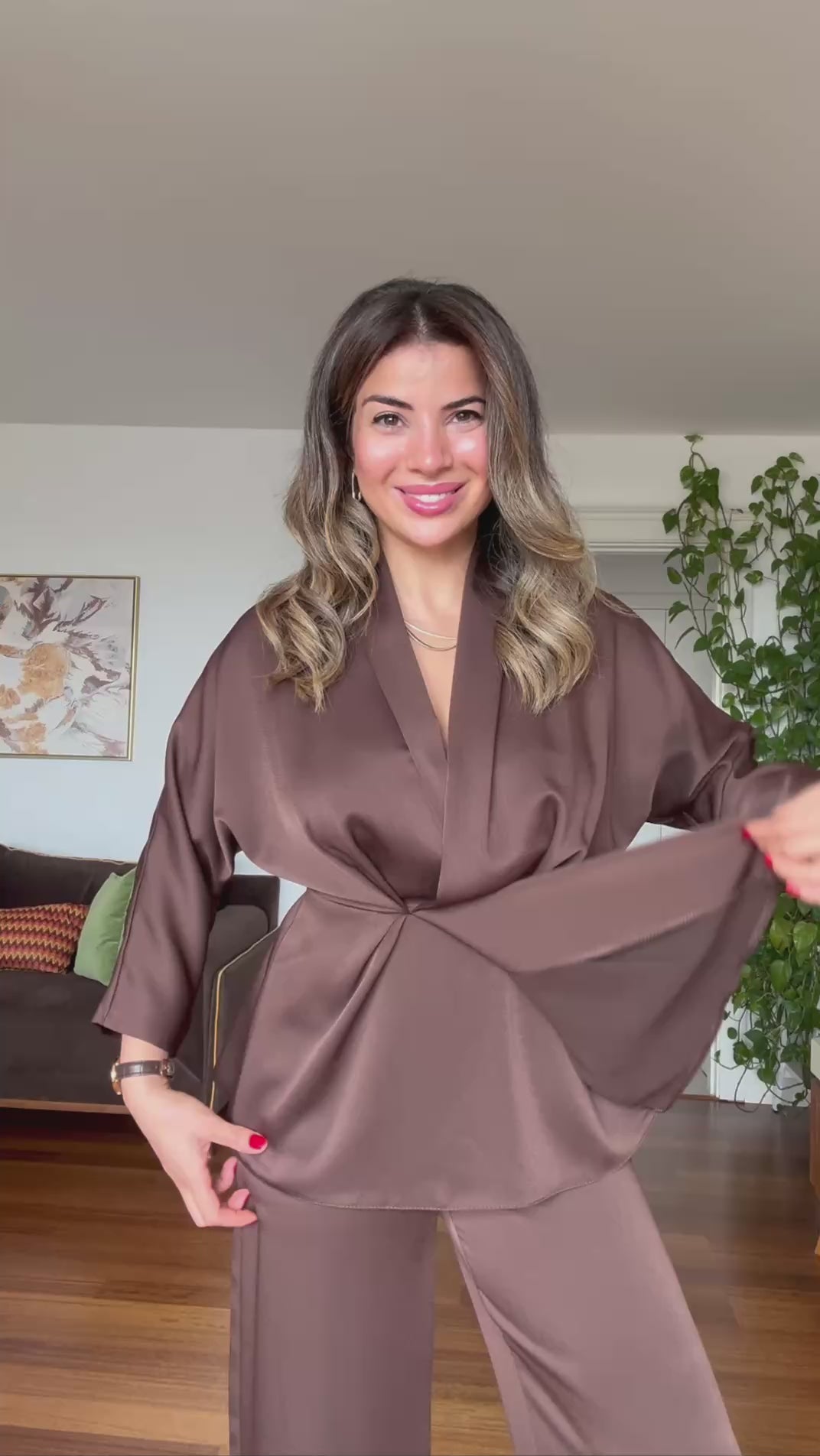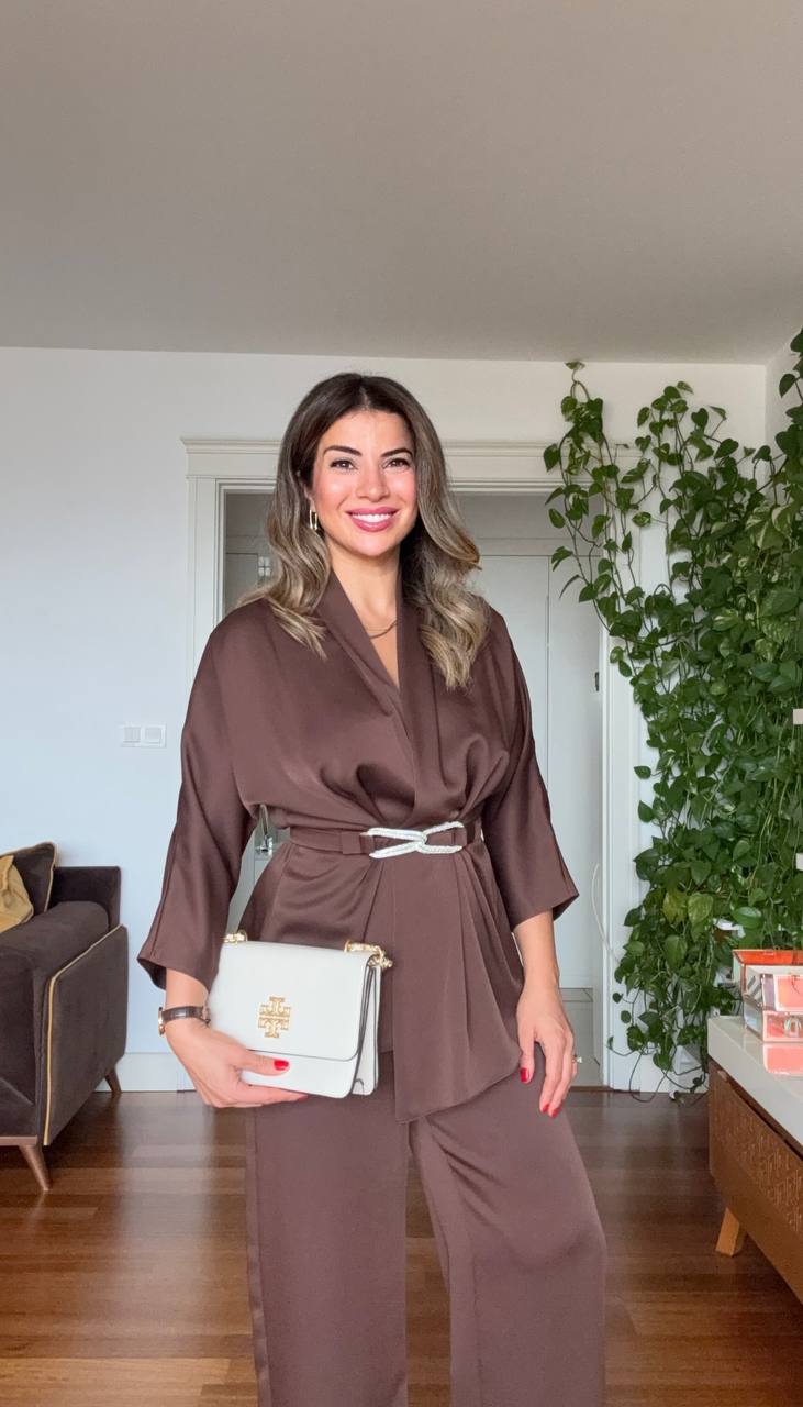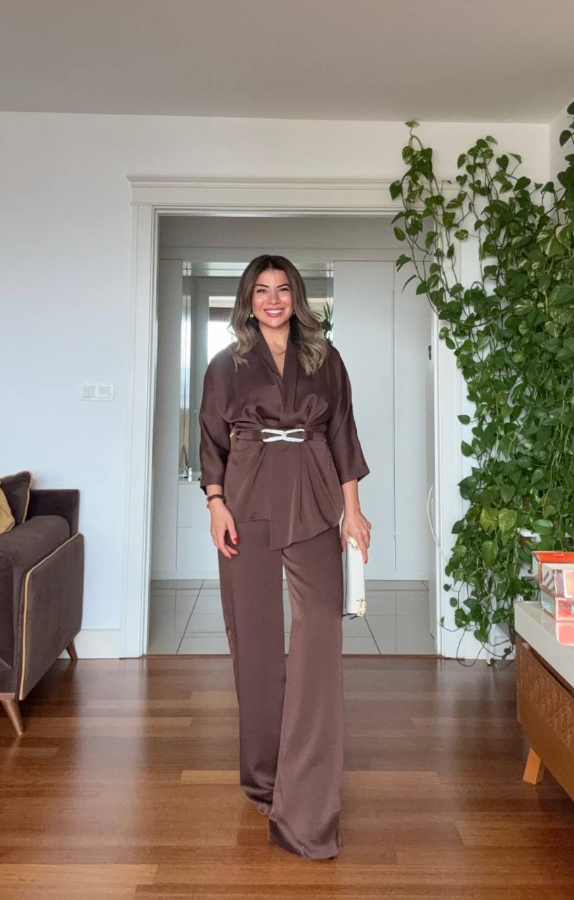 Zamansız şıklığı modern bir dokunuşla sunan bu takım, hem özel günlerinizde hem de iş yaşamınızda sofistike bir görünüm elde etmenizi sağlar. Akıcı kumaşı ve zarif duruşuyla konforu şıklıkla birleştirir.