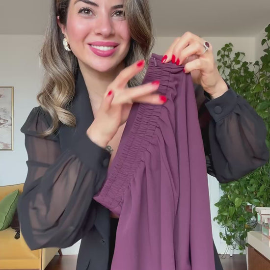 • Pantolon: Yüksek bel, geniş paça kesimi sayesinde hem konforlu hem de uzun ve zarif bir görünüm sağlar.