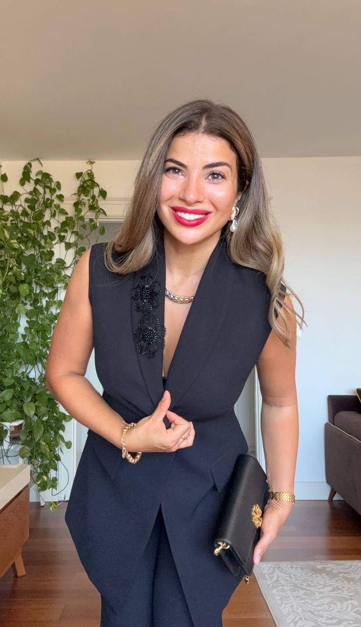 ŞİFON DETAYLI BEL İŞLEMELİ TAKIM – SİYAH